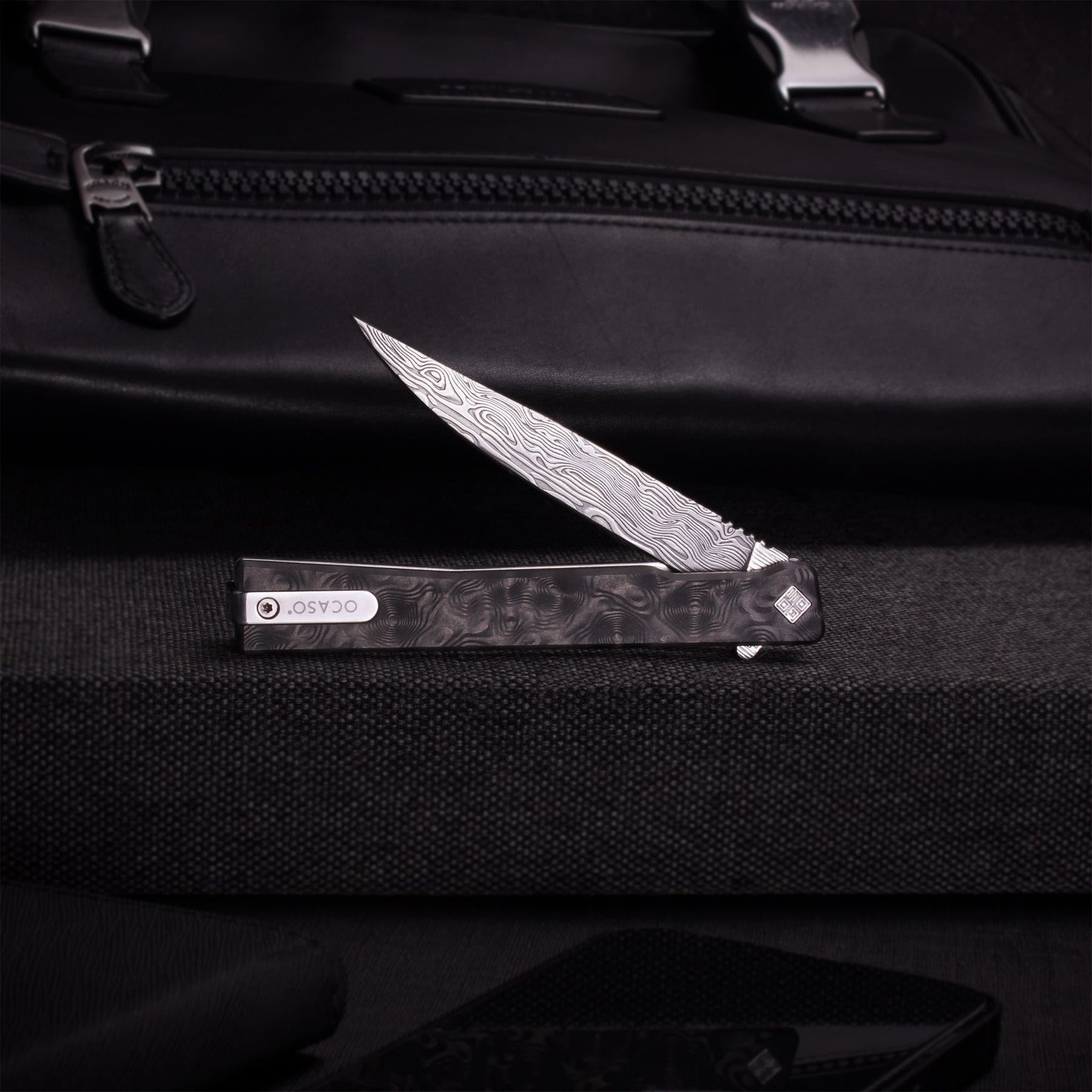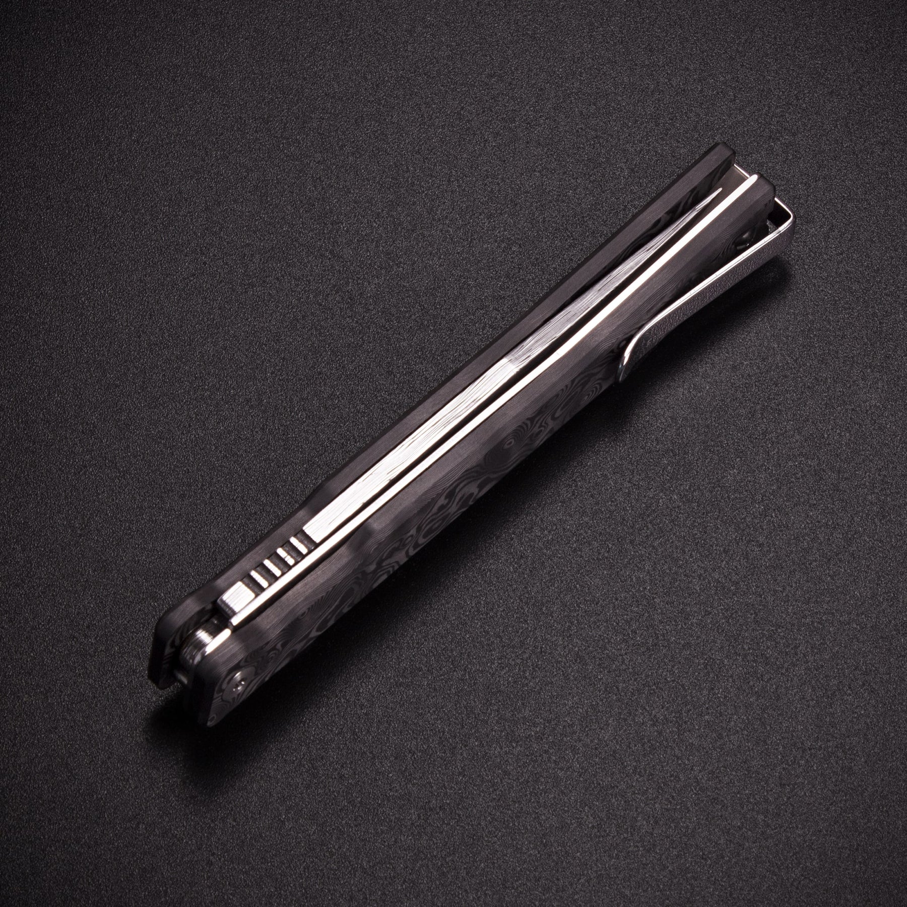 Coming Early December The Damascus Solstice returns with a striking new look. Outfitted with an eye-catching Damasteel® Damascus blade and paired with ultra lightweight Fat Carbon® handle scales. The liner lock and stainless steel caged bearings deliver snappy, smooth action. Polished hardware, an anodized titanium backspacer, and our signature ambidextrous fold-over stainless steel deep carry pocket clip complete the look of this one of a kind knife. Made in Maniago, Italy, in the “city of knives”, where centuries of high-quality knife craftsmanship and the latest technology meet.