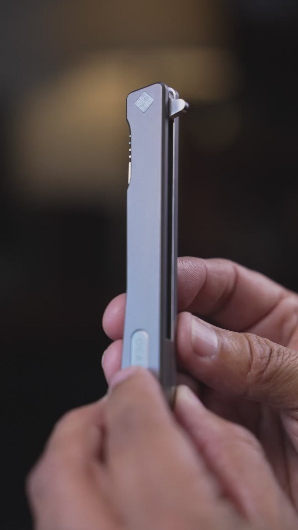 The 3.5” blade is available in Straight, Harpoon, or Wharncliffe profiles and is made from USA CPM S35VN steel for superior edge retention and wear resistance. Available with aerospace grade titanium or 3k carbon fiber handle scales and stainless steel caged bearings and a flipper mechanism to ensure incredibly smooth, fast deployment. Our signature fold-over deep-carry stainless steel pocket clip wraps cleanly around the handle for a low-profile, ambidextrous carry that is discreet in any pocket.